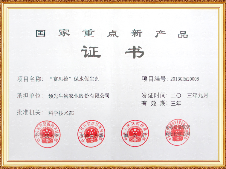 “富思德”保水促升剂—国家重点新产品