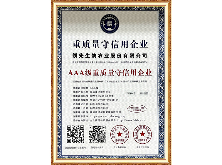 AAA级重质量守信用企业